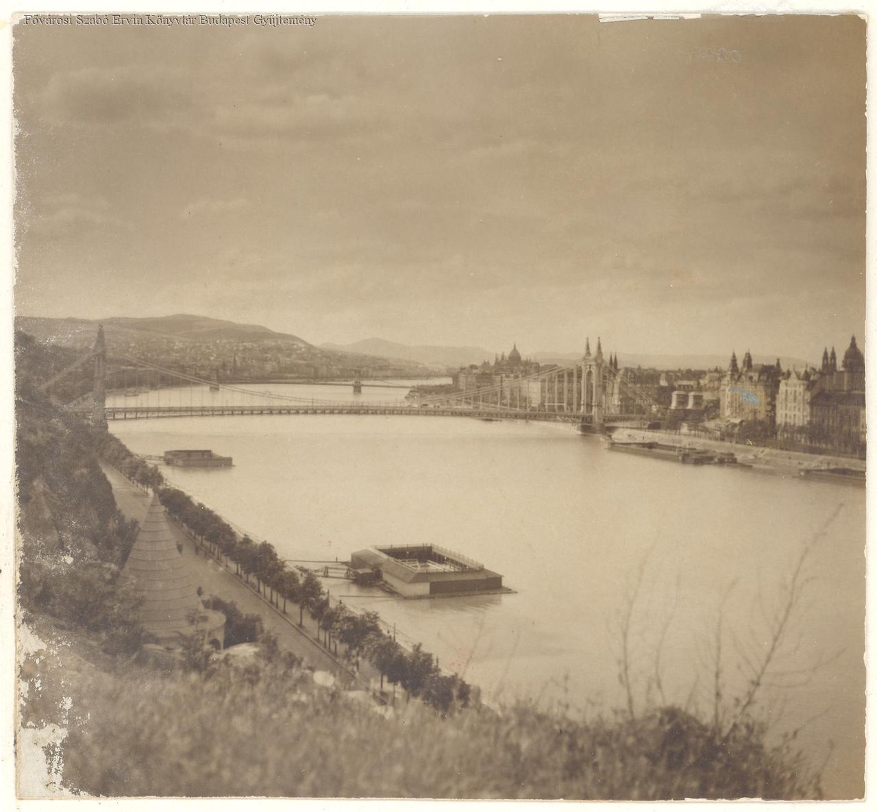 A Gellérthegy oldaláról északi irányban Buda és Pest részletével. (1932 után: áll már a pálos kolostor.)
