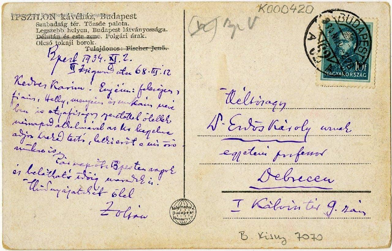 Knöpfmacher J. Budapest Vörösmarty u. 11.