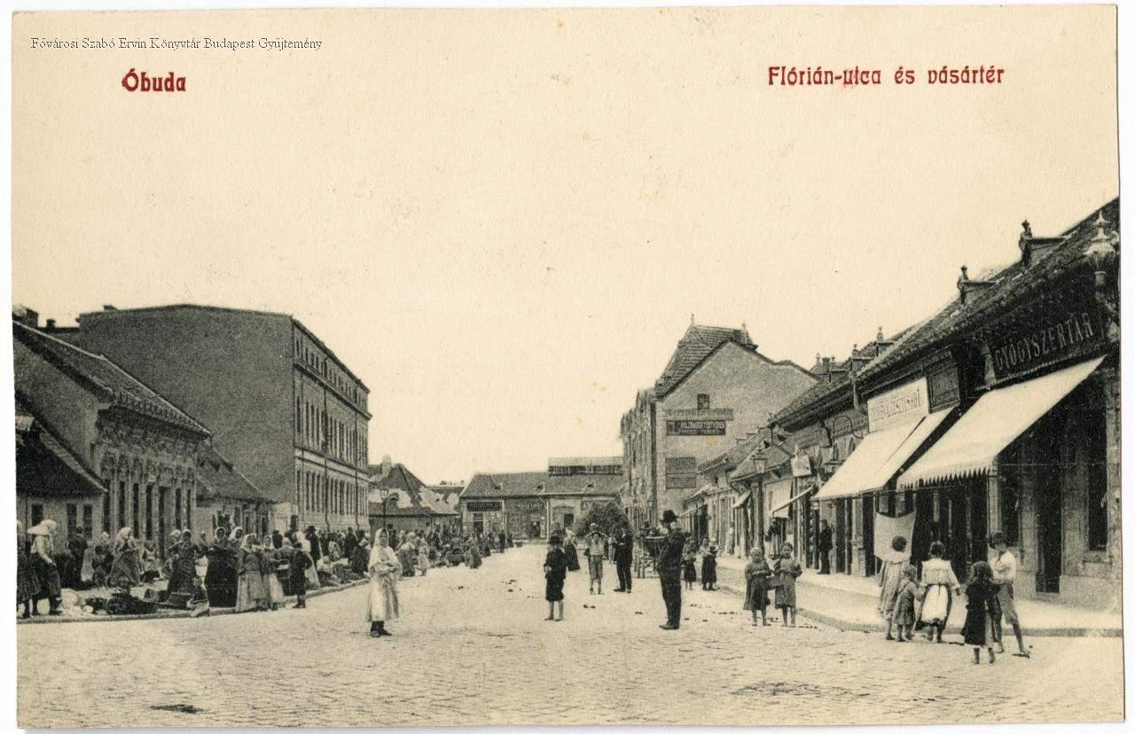 Óbuda Flórián-utca és vásártér : levelező-lap