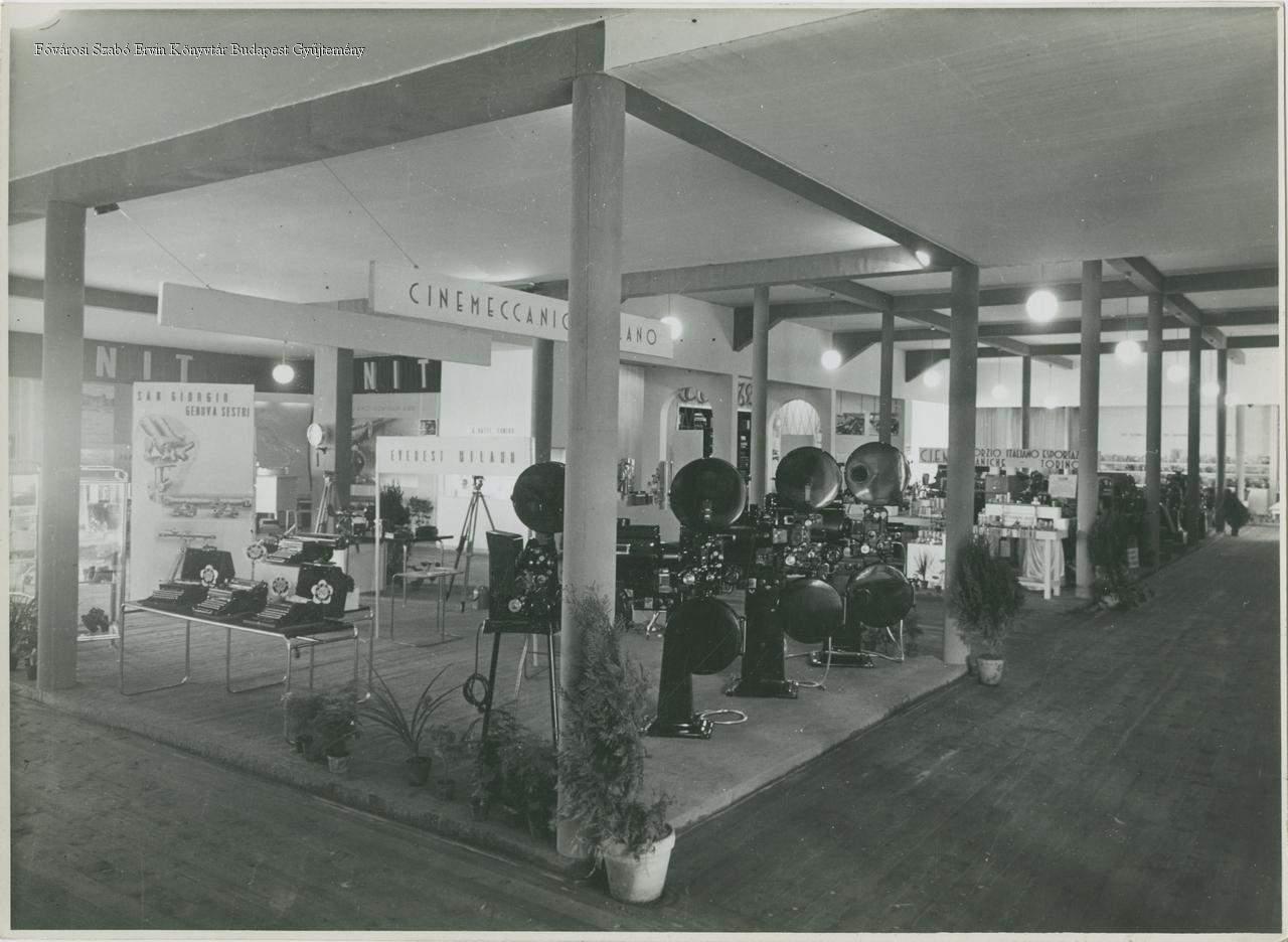 [Budapesti Nemzetközi Vásár, Olaszország pavilonja, 1941. május] [előtérben a Cinemeccanica mozifilmtechnikai berendezéseket gyártó cég és a San Giorgio optikai vállalat bemutató tere] /