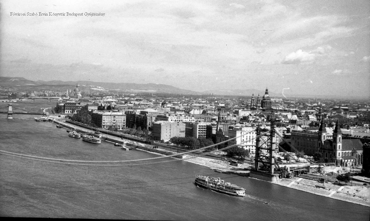 [Az épülő Erzsébet híd a Gellérthegyről]