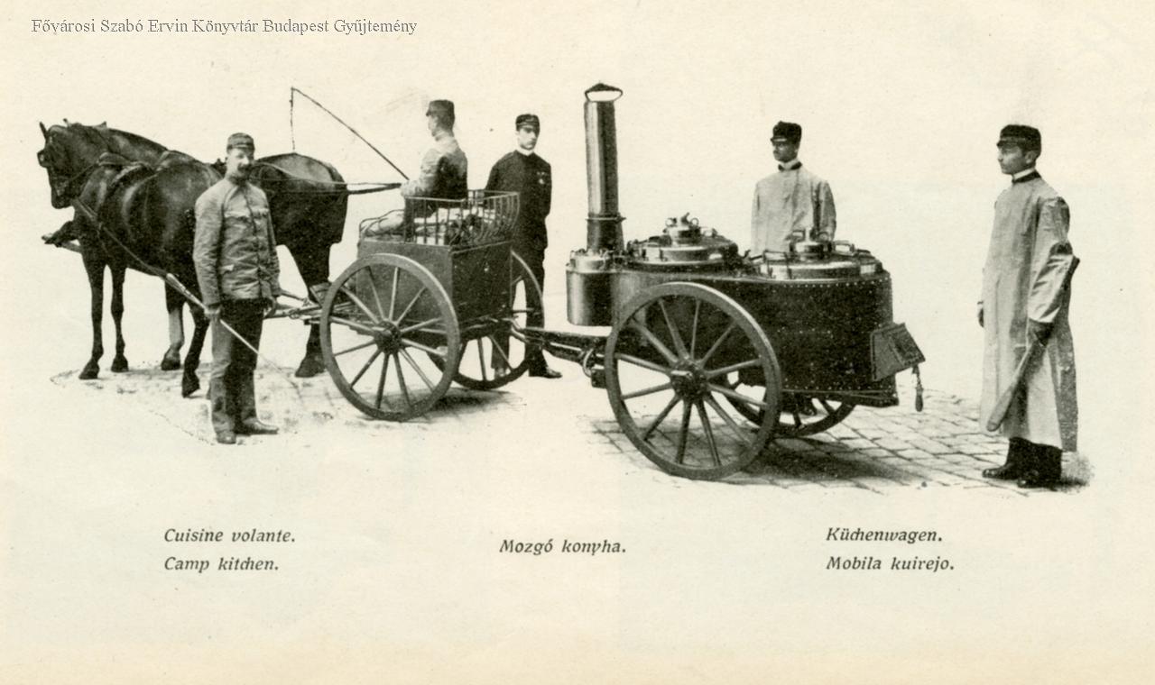 Mozgó konyha Cousine volante = Camp kitchen = Küchenwagen = Mobila kuirejo