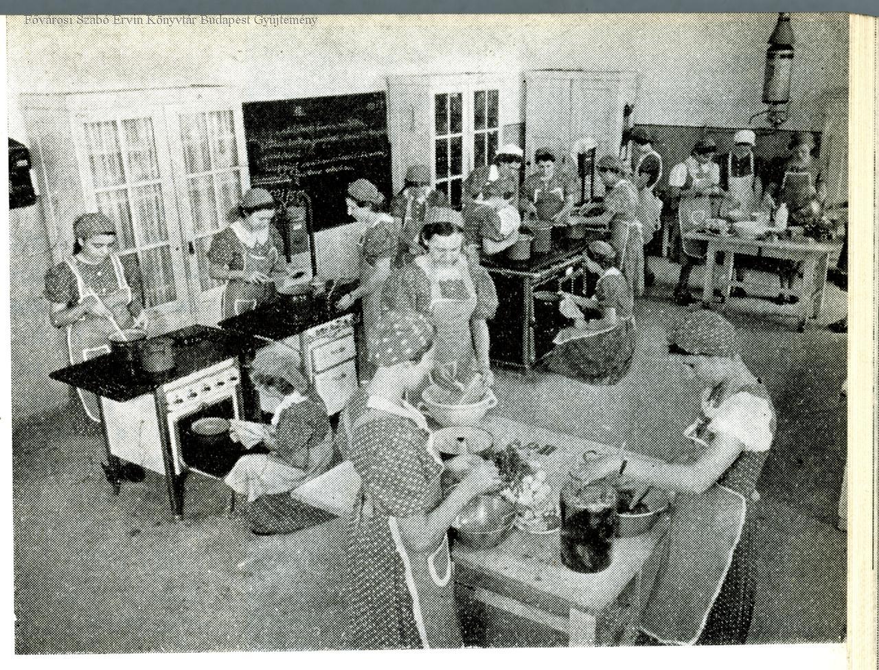 [Háztartási továbbképző tanfolyam a IV., Prohászka Ottokár utcai polgári leányiskolában, fehérvarrás]