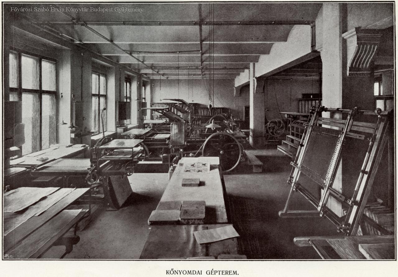 nyomdaipar, litográfia, gép és berendezés, belső felvétel, terem, 1899