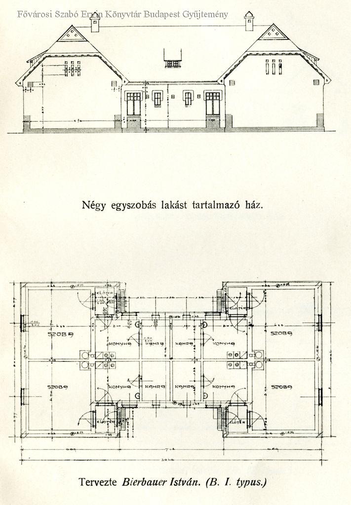 Négy egyszobás lakást tartalmazó ház, tervezte Bierbauer István, B. I. typus [A kispesti Állami Munkástelep lakóházai]