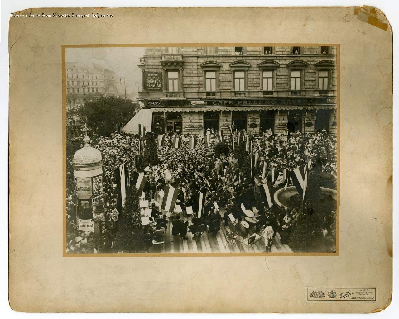 [Az Auguszta-zenekar háborús jótékonysági koncertje a Liszt Ferenc téren 1914. augusztus 27-én]