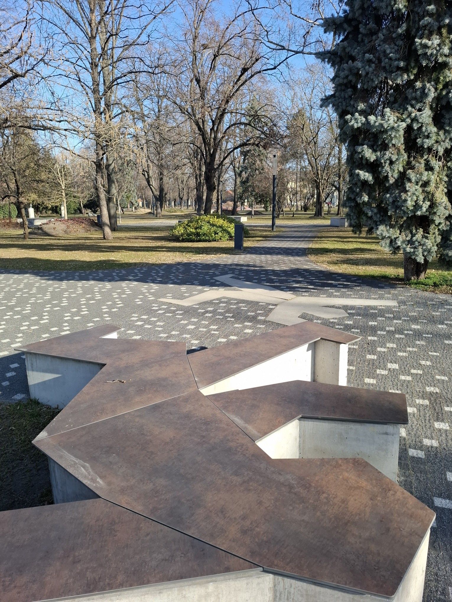 A '30-as években kialakított park fái között hatalmas hársak és platánok között lehet sétálni. Az eredetileg Hősök ligete nevű téren annyi juhart ültettek, ahányan meghaltak az első világháborúban. Sajnos ezek a juharfák már pusztulóban vannak, pótlásukról folyamatosan gondoskodni kell. A park legszebb fái a művészek szobrai mellett található japánjuharok, melyek ősszel csodálatos vörös színű leveleikkel díszítenek.