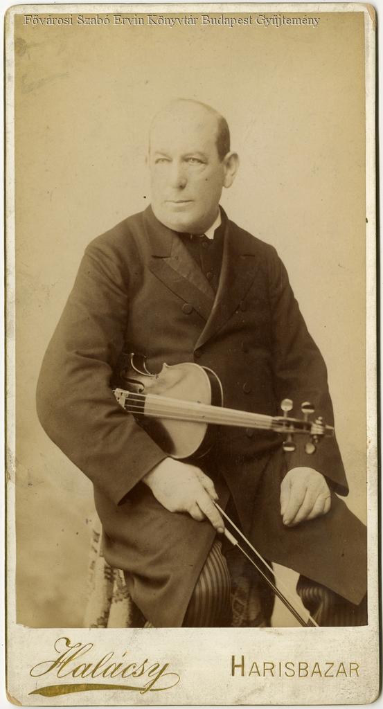 műtermi portré, térdkép, zeneszerző, zeneművész, hegedű, 1880-as évek