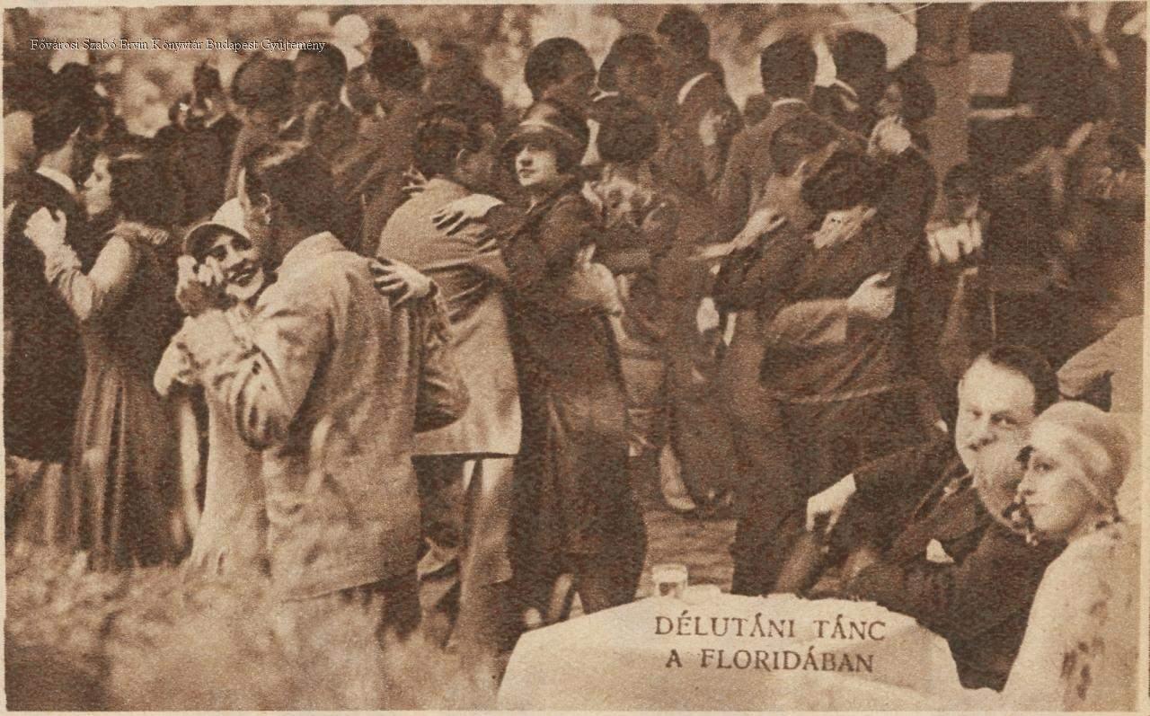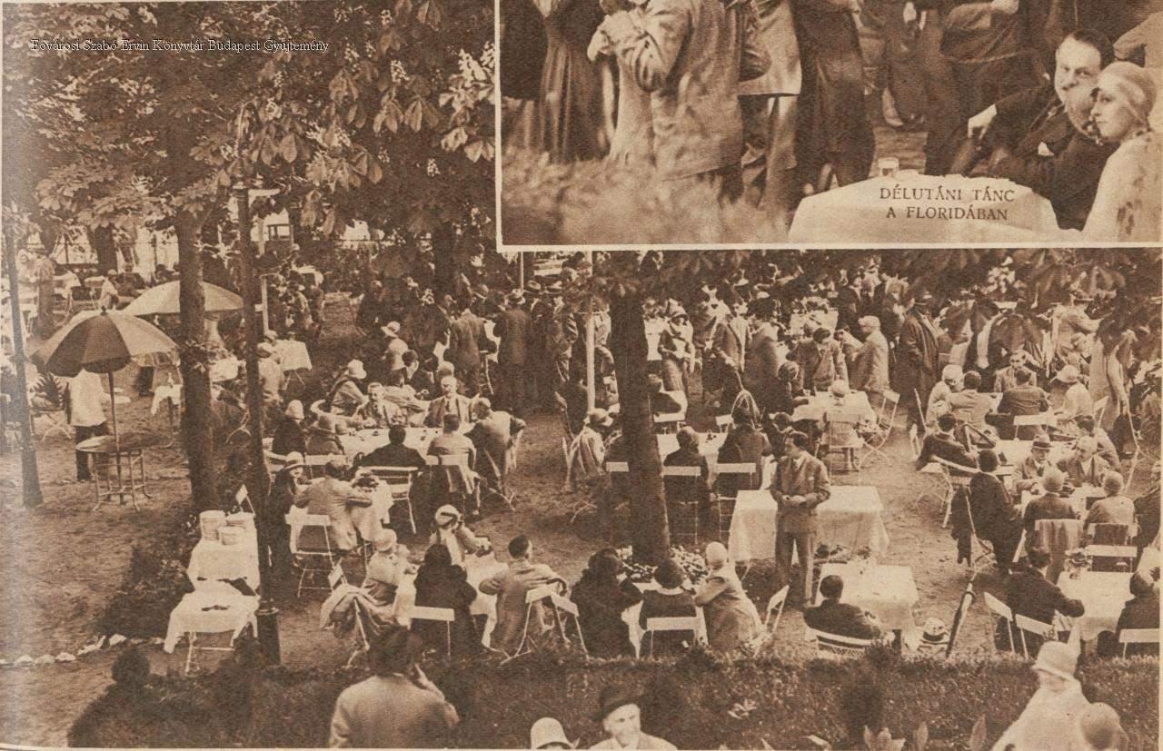 Felvételek a Florida parkjáról (Retek ucca 81) előkelő közönség a Florida-uzsonnán : délutáni tánc a Floridában : berendezte: Hexner József kávéházi és vendéglői berendezések szaküzlete VII., Király ucca 25.