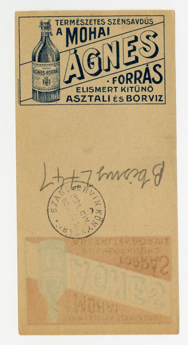 víz, gyógyhatás, egészség, szénsav, üveg, palack, üvegpalack, reklámnyomtatvány, kisnyomtatvány, aprónyomtatvány, számolócédula