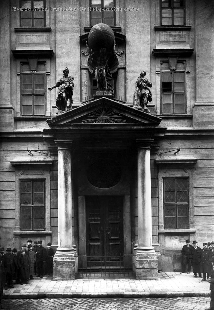 [Károly laktanya, majd Központi Városháza kapuzata Atlasz-(Globus-) szoborral]