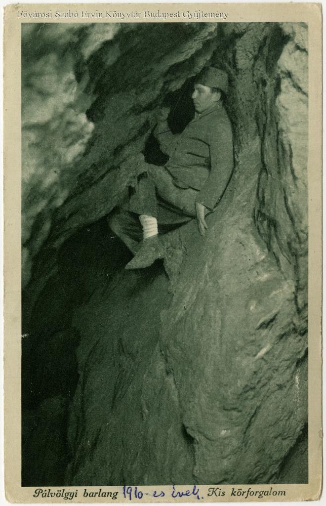 képes levelezőlap, belső felvétel, cseppkőbarlang, barlangászat, férfi, 1910-es évek