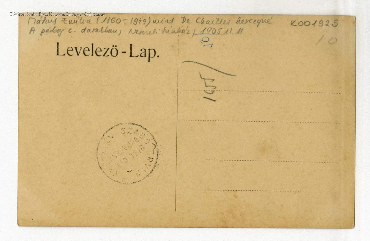 De Chailles hercegnő szerepében Lavedan "A párbaj" című, a Nemzeti Színházban 1905. november 11-én bemutatott drámájában