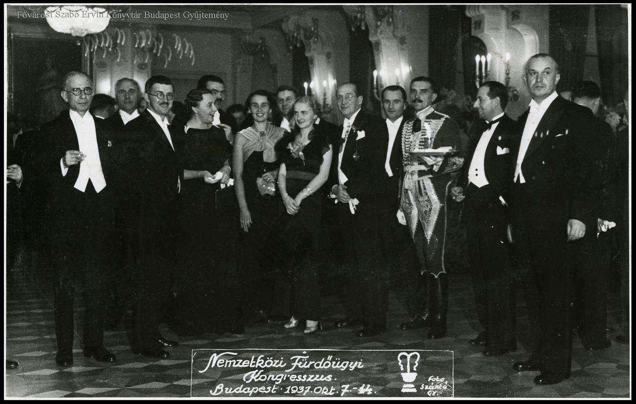 balneológia, gyógyfürdő, idegenforgalom, konferencia, fogadás, ünnep, estélyi ruha, frakk, sajtófotó, Horthy-korszak, 1937