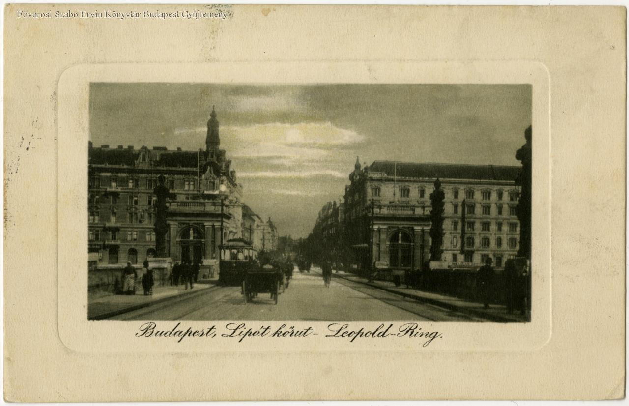 lakóépület, bérház, közúti híd, hídfő, utcakép, képes levelezőlap, 1910 körül, századelő