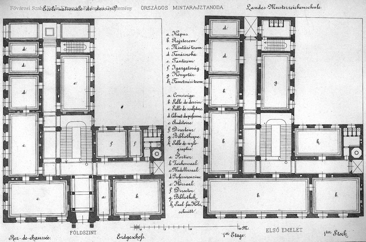 főiskola, képzőművészeti oktatás, építészeti tervrajz, 1883 körül