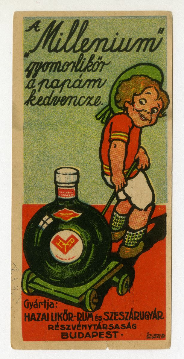 élelmiszer, ital, likőr, rum, szesz, áru, gyár, üvegpalack, fiú, gyermek, kézikocsi, reklámnyomtatvány, kisnyomtatvány, aprónyomtatvány, számolócédula