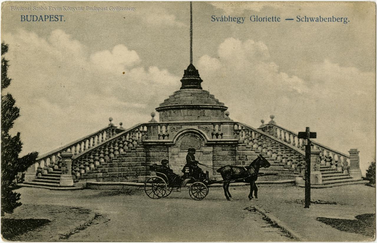 kilátó, képes levelezőlap, lépcső, lovas kocsi, 1910 körül