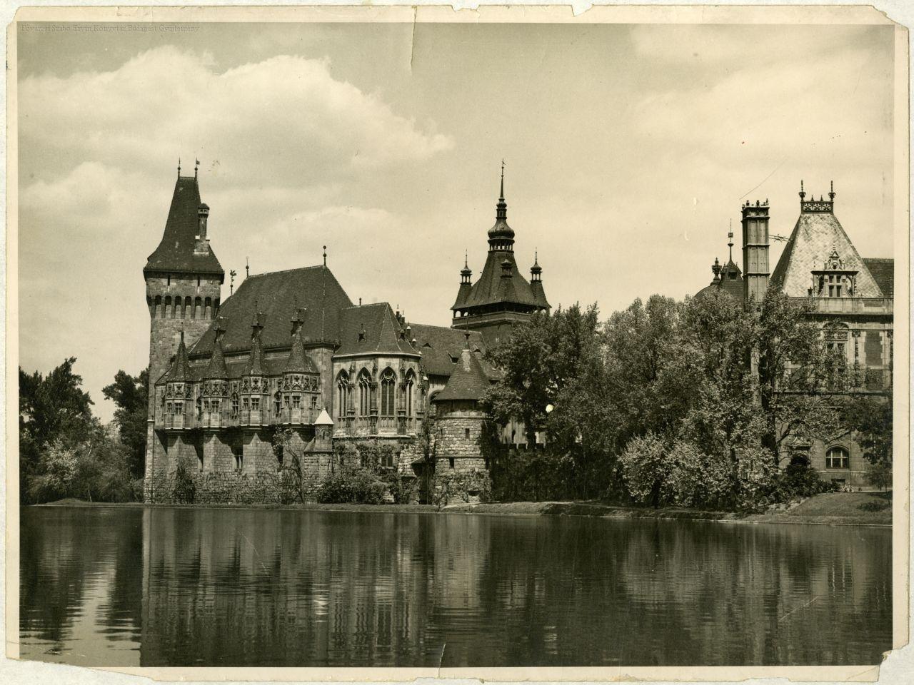 historizmus, millennium, vár, múzeum, neogótika, tó, növényzet, épületkép, 1910-es évek