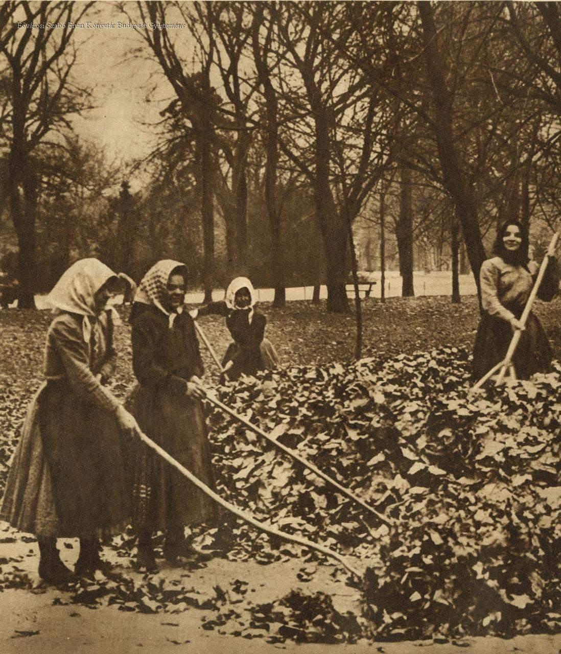ősz, nő, női munka, fizikai munka, park, jelenetkép, 1927