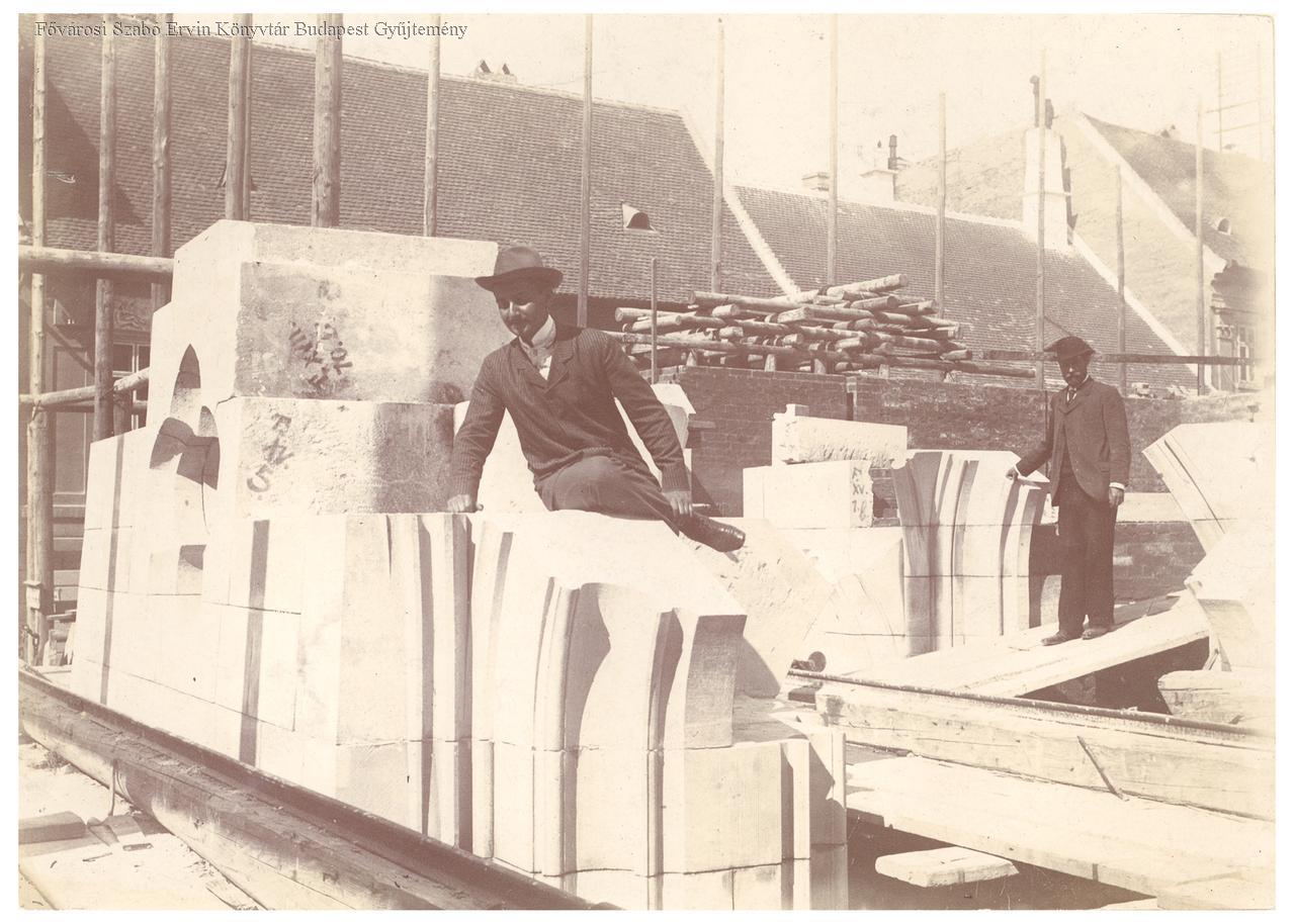 [Pénzügyminisztérium új palotájának építése, ketten az építésvezetőségből]