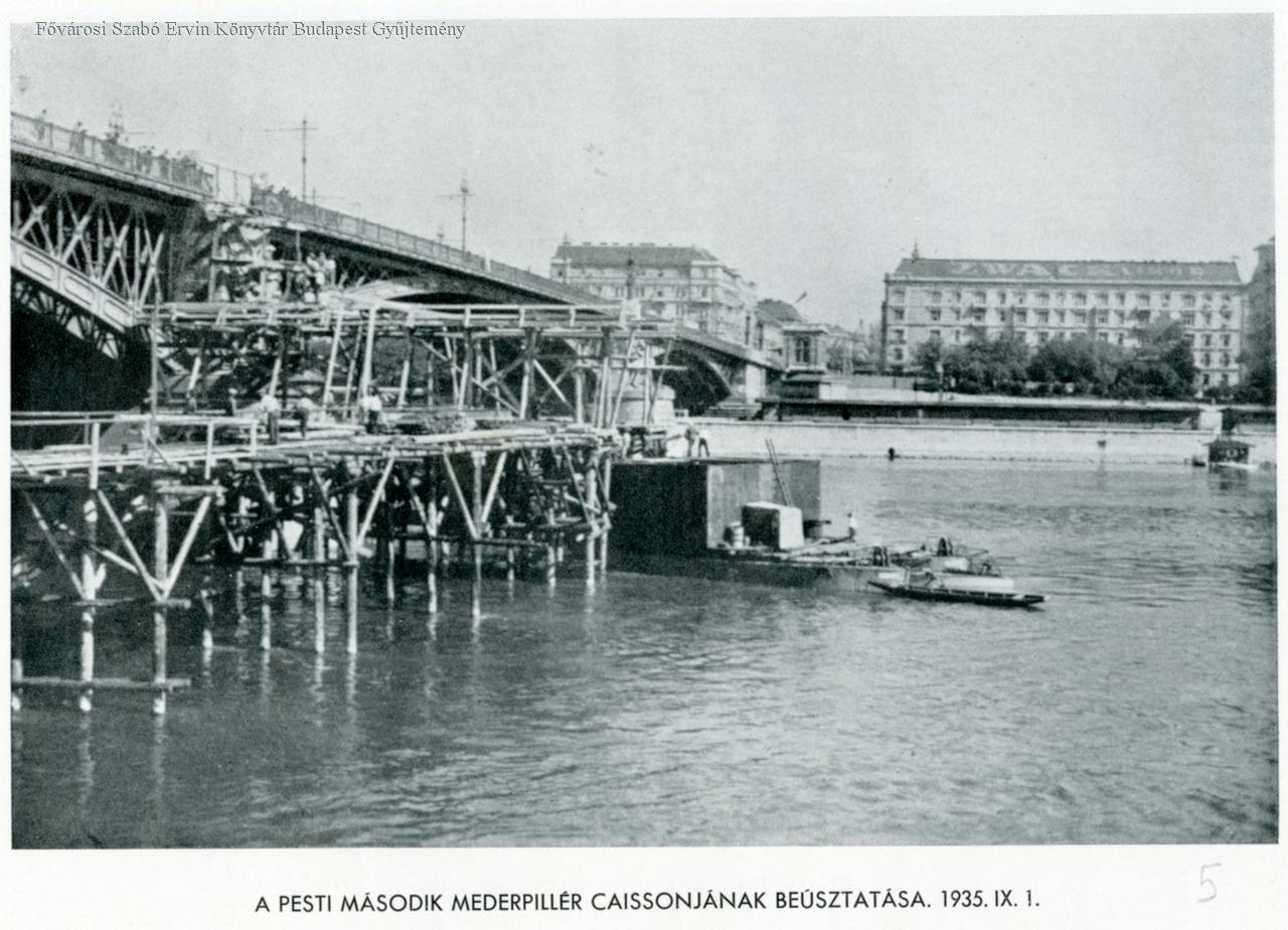 [A Margit híd átépítése, 1935-1937] A pesti második mederpillér caissonjának beúsztatása : 1935. IX. 1.