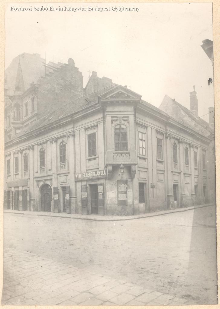Sarokház Winkler Henrik és Gyula cégfelirattal. Házlebontás miatt az üzlet elköltözés előtt áll