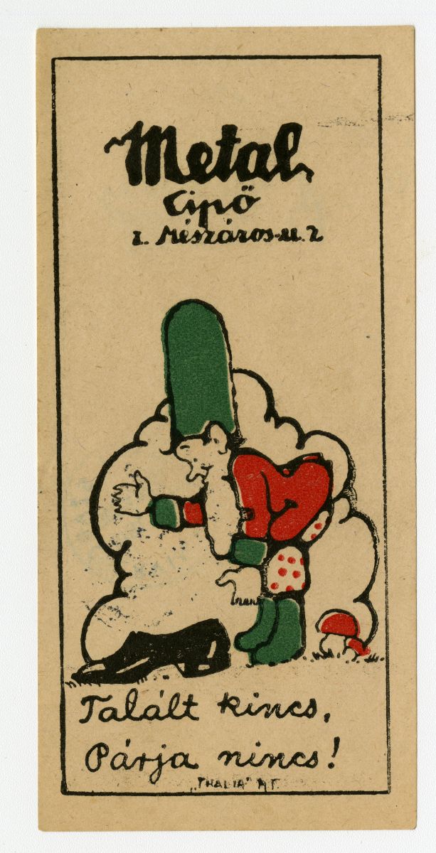 férfi cipő, lábbeli, cipész, férfi, üzlet, manó, törpe, reklámnyomtatvány, kisnyomtatvány, aprónyomtatvány, számolócédula