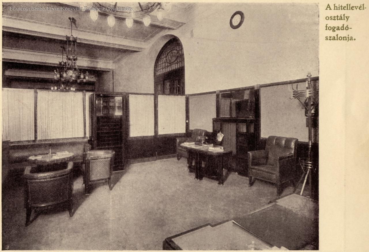 bank, hitelügy, terem, bútorzat, 1911