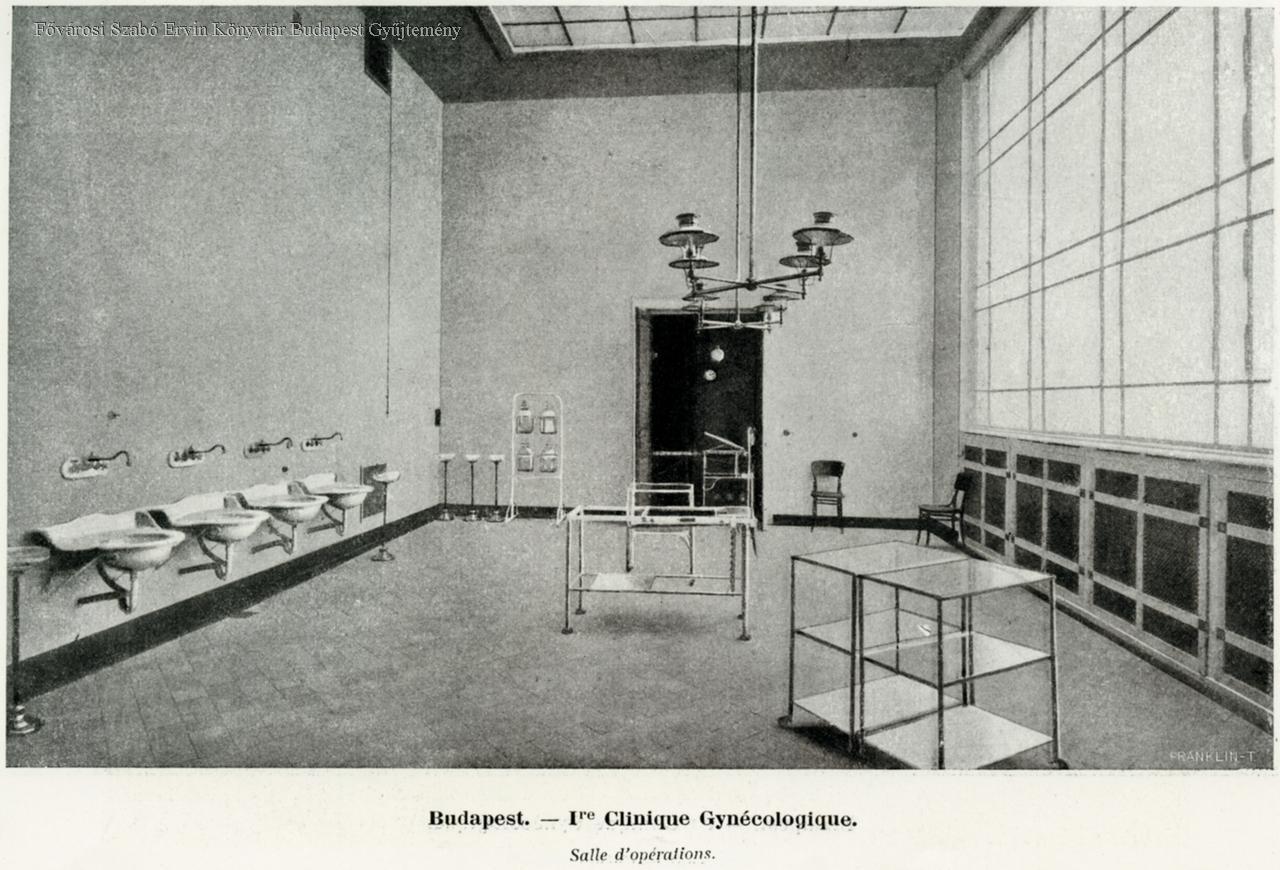 Budapest I-re Clinique Gynécologique Salle des cours, salle d'operations, salle du travail, vestibul de la salle du travail, salle de accouchées, couloir