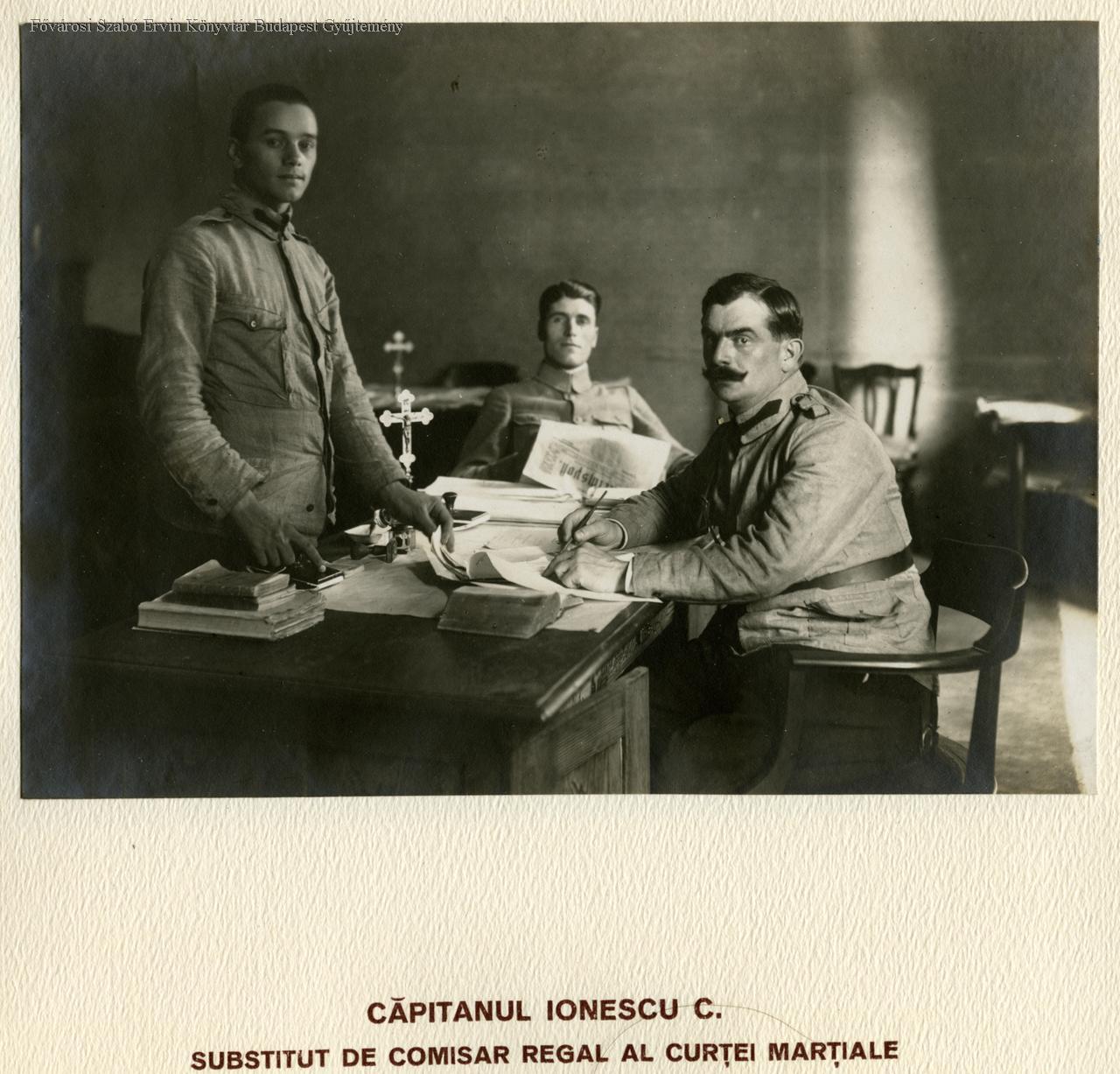 első világháború, románok, megszállás, katonatiszt, 1919, csoportkép, íróasztal, kereszt