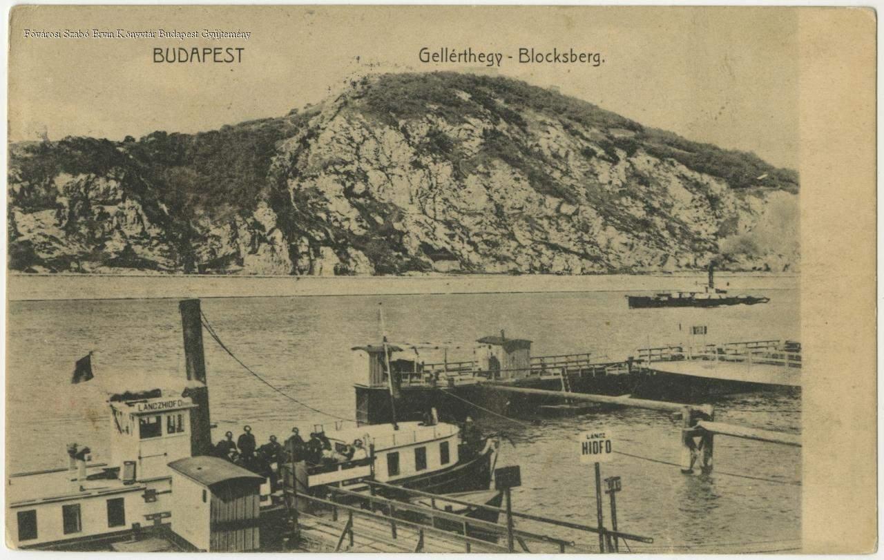 Előtérben a pesti parton kikötött átkelőhajó (propeller, csavargőzös)