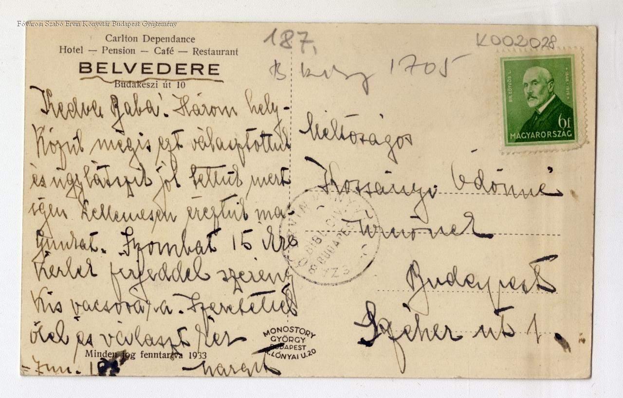A kiadó címe a hátoldalon: Budapest IX. kerület Lónyai utca 20.