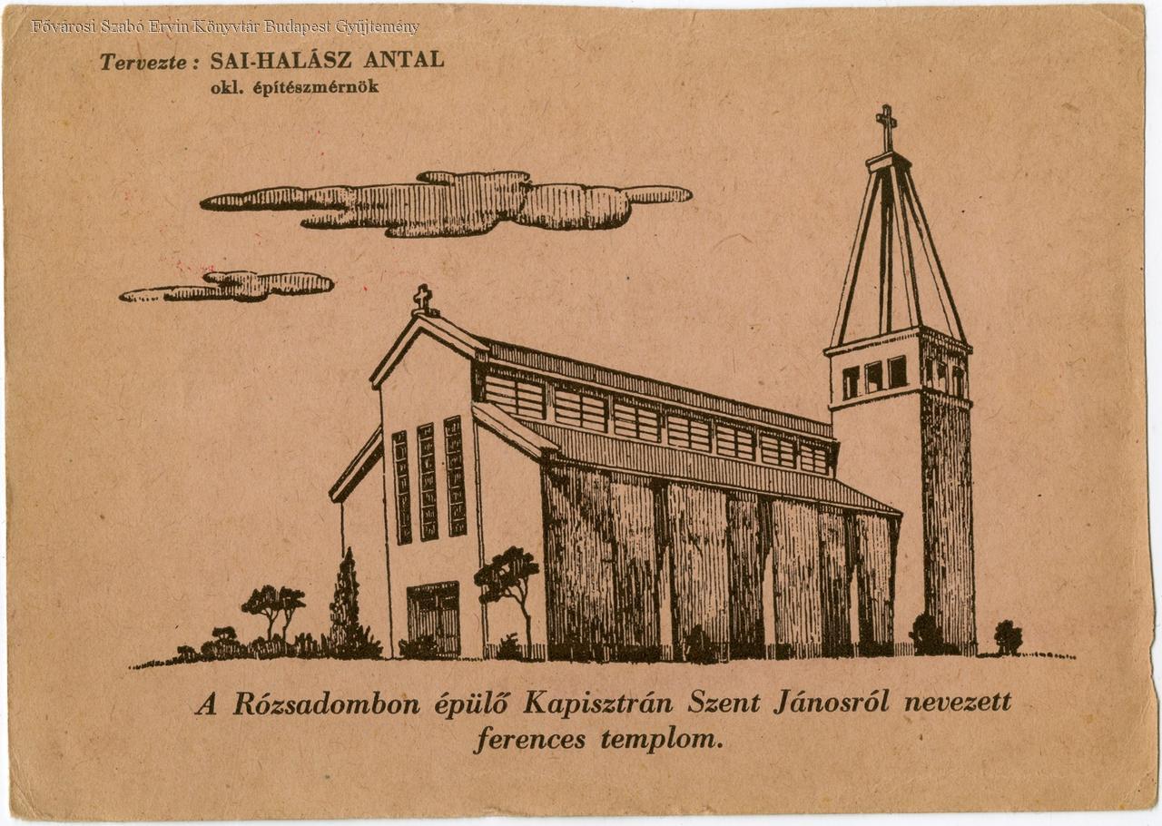 A Rózsadombon épülő Kapisztrán Szent Jánosról nevezett ferences templom Tervezte: Sai-Halász Antal okl. építészmérnök