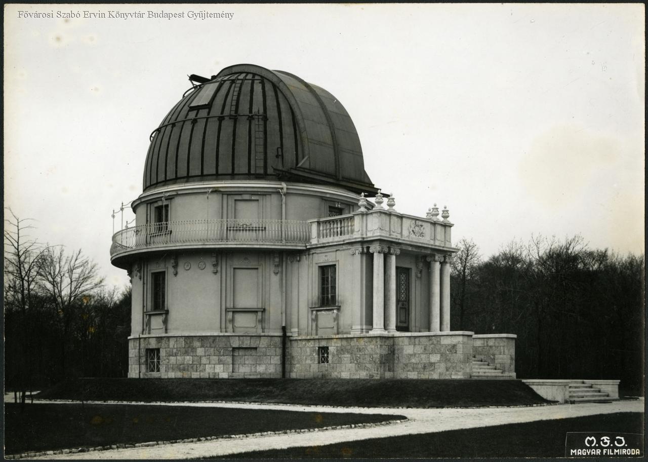 külső felvétel, csillagvizsgáló, kutatóintézet, épületkép, kupola, park, 1930-as évek