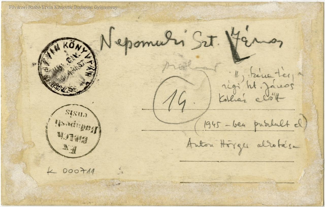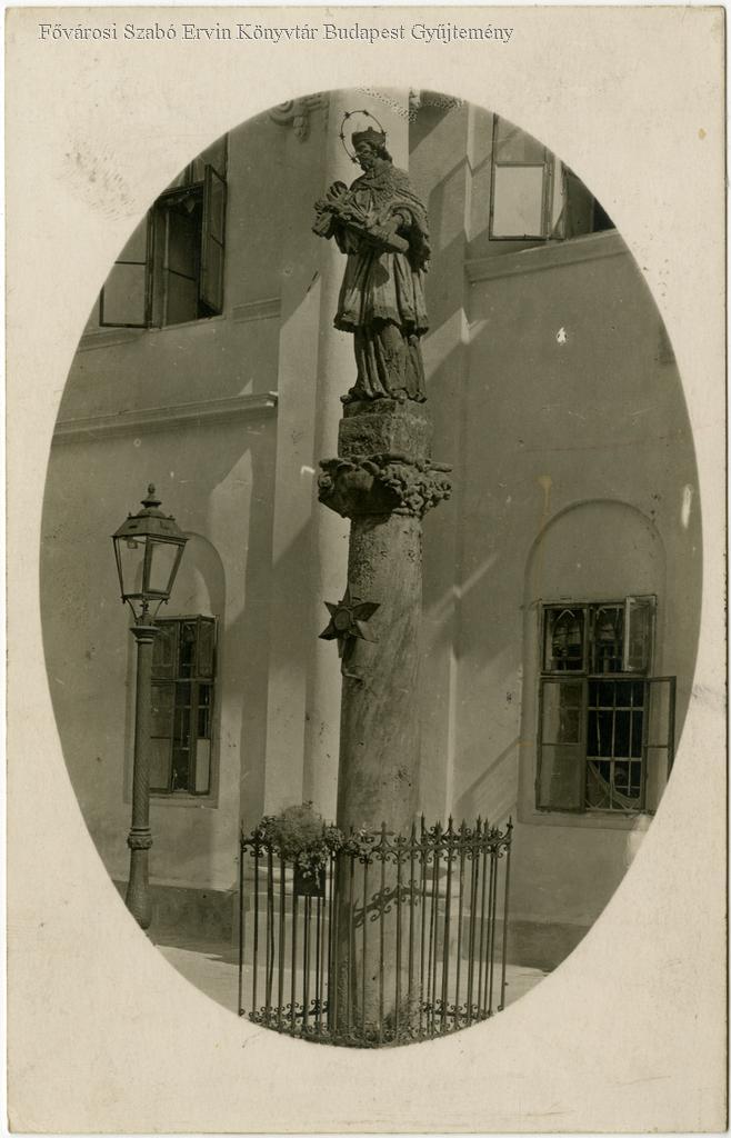 [Nepomuki Szent János szobra a régi Szent János Kórház előtt a Széna téren]