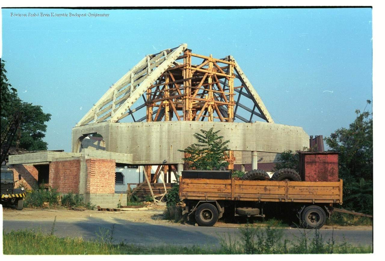 külső felvétel, utcakép, templom, tehergépkocsi, építés, daru, munkagép, 1990-as évek