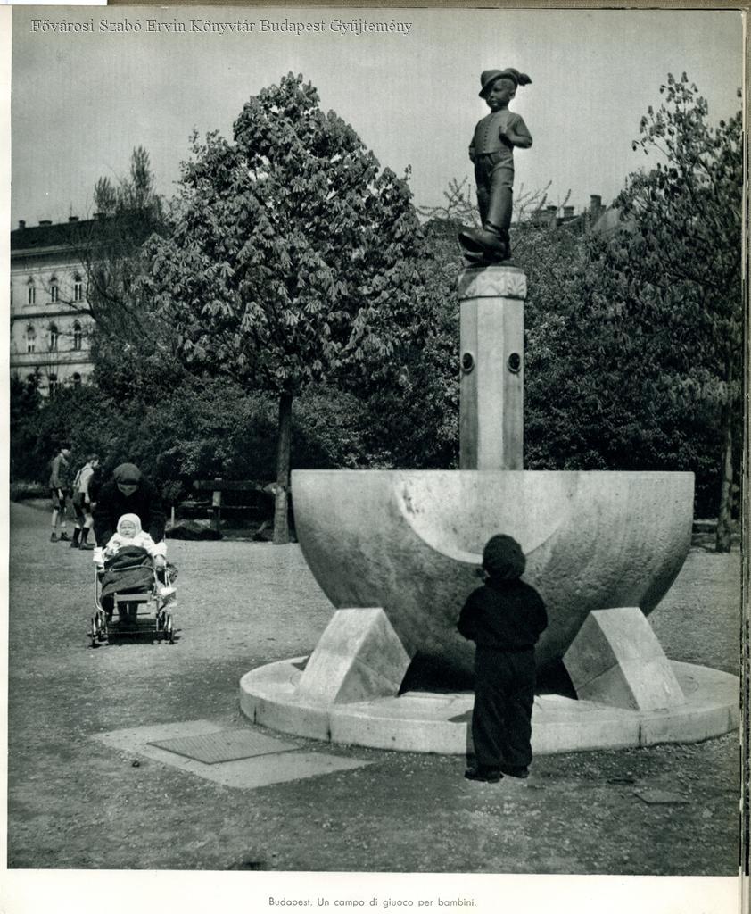 szobor, díszkút, babakocsi, 1934