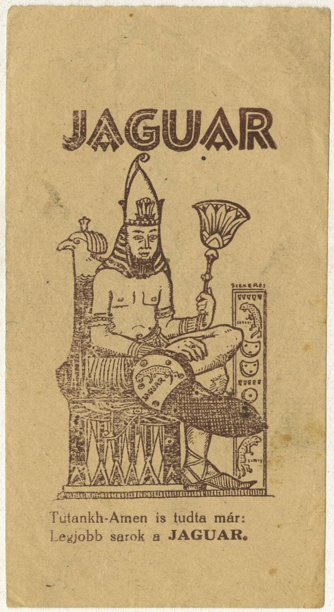 cipő, kaucsuk, embléma, jaguár, fáraó, vers, reklámvers, reklámnyomtatvány, kisnyomtatvány, aprónyomtatvány, számolócédula
