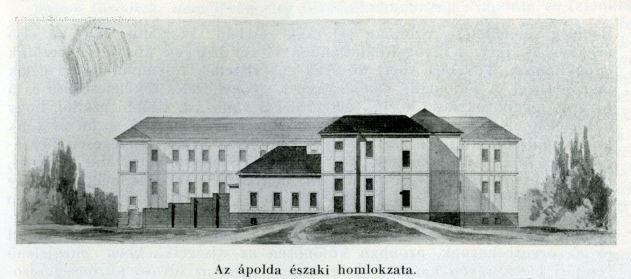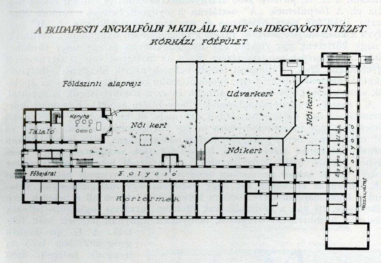 kórház, ideggyógyászat, elmegyógyintézet, ideggondozó, építészeti tervrajz, helyszínrajz, homlokzat, 1880-as évek, 1890-es évek