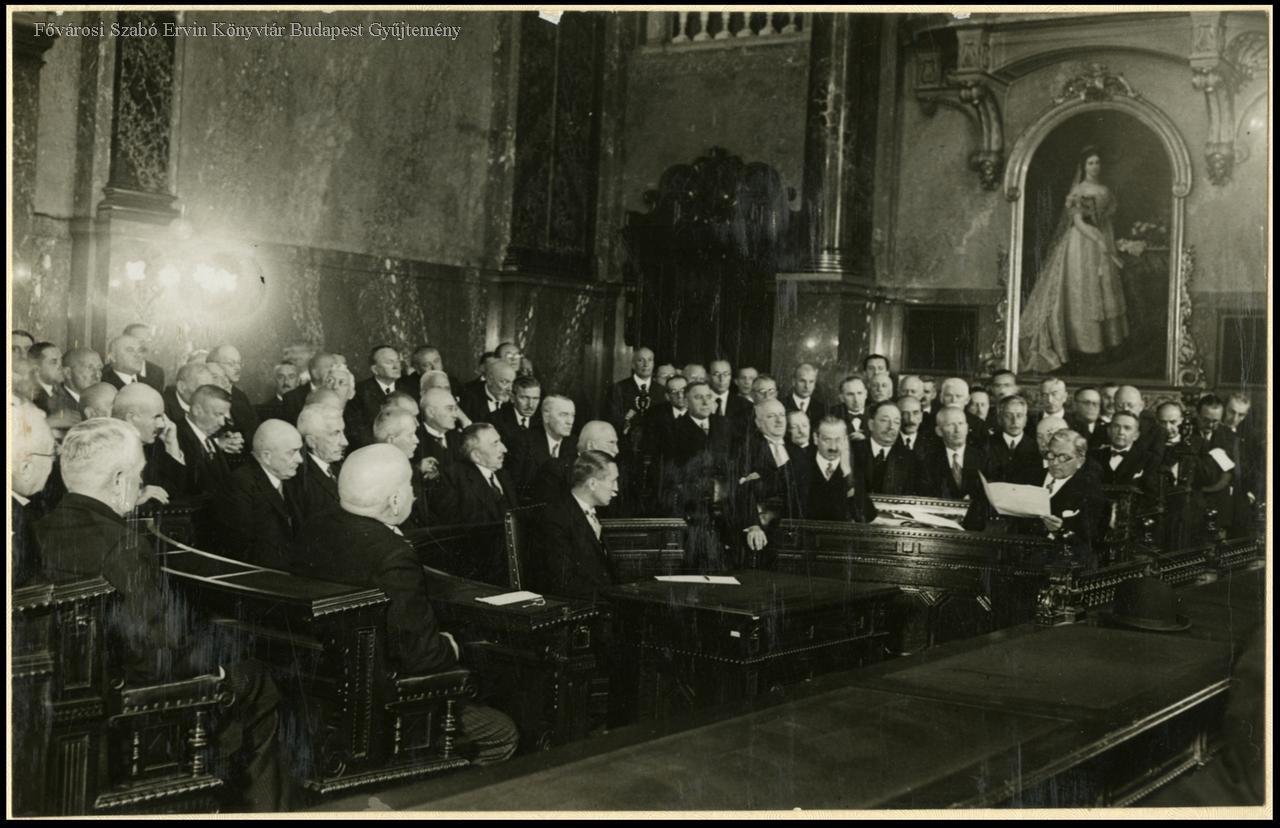 székház, legfelsőbb bíróság, vezető alkalmazott, búcsúzás, rendezvény, belső felvétel, festmény, 1934