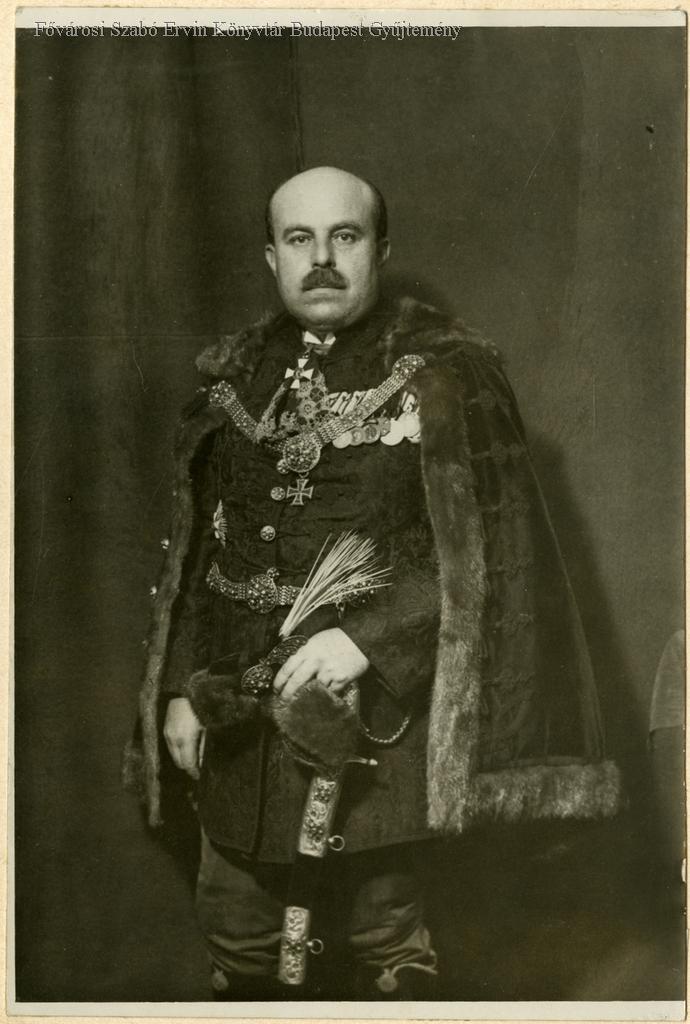főpolgármester, díszmagyar, műtermi portré, térdkép, 1932