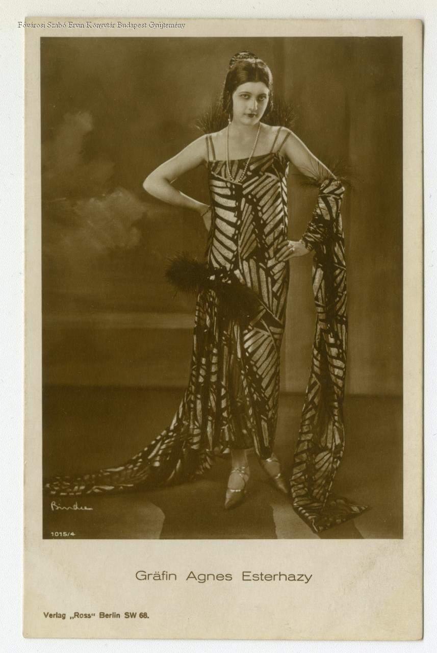 képes levelezőlap, műtermi portré, színész, nő, estélyi ruha, sál, egészalakos kép, 1920-as évek