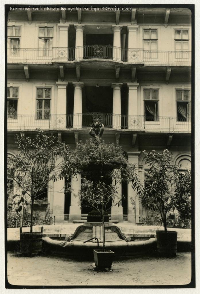 udvar, lakóépület, folyosó, szobor, díszkút, 1930-as évek