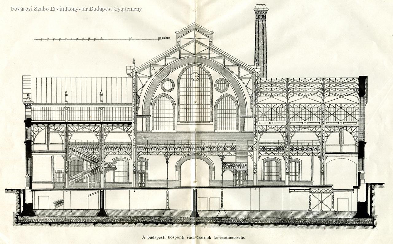 A budapesti központi vásárcsarnok keresztmetszete