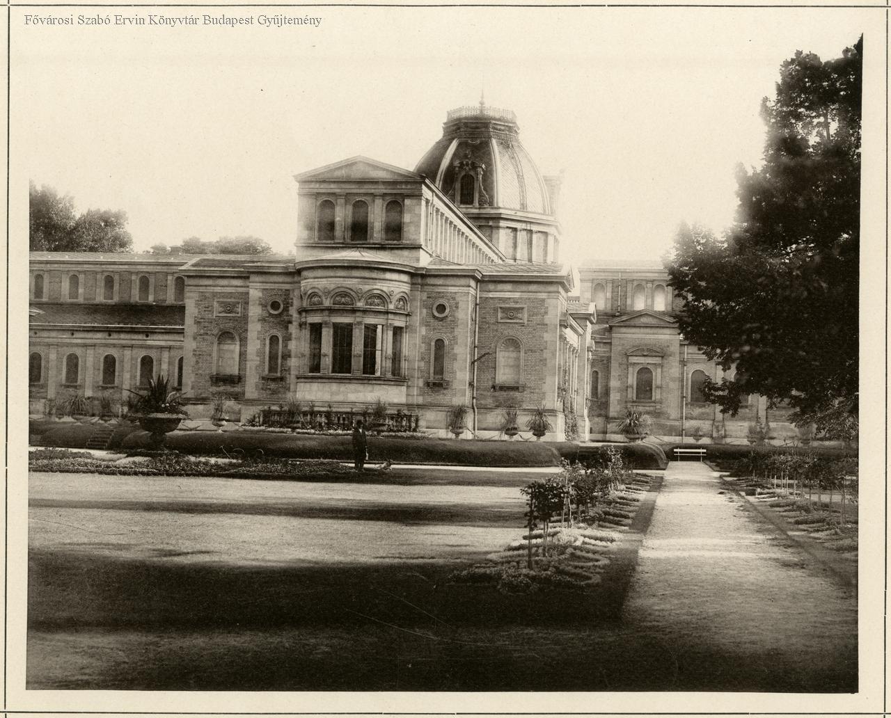fürdő, növényzet, park, épületkép, külső felvétel, 1883 körül