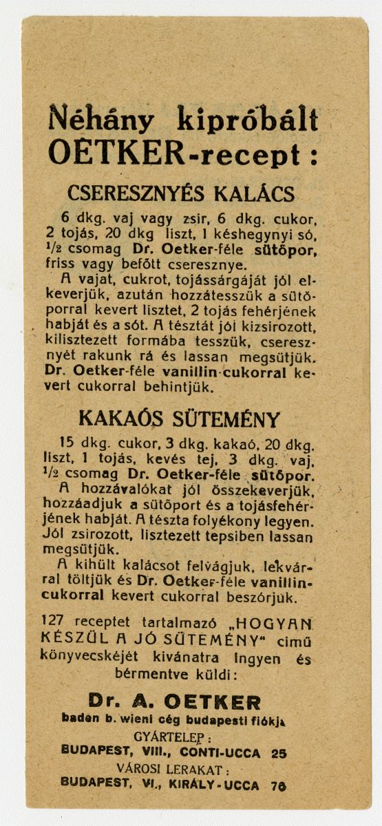 sütés, sütőpor, sütemény, recept, szakácskönyv, reklámnyomtatvány, kisnyomtatvány, aprónyomtatvány, számolócédula