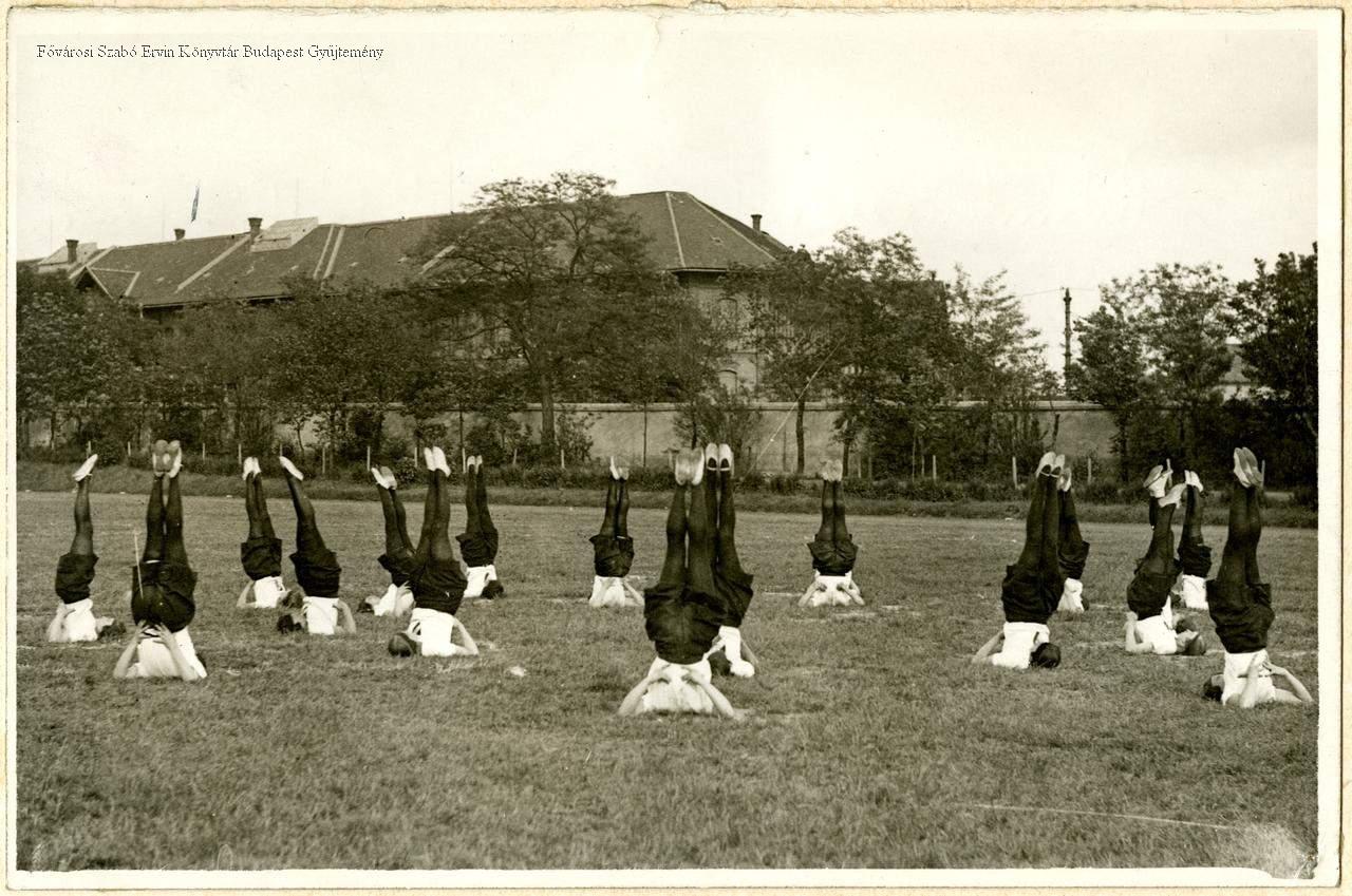 testnevelés, sport, pedagógusképzés, felsőoktatás, testgyakorlat, torna, nő, sportpálya, iskolaépület, 1920-as évek, 1930-as évek