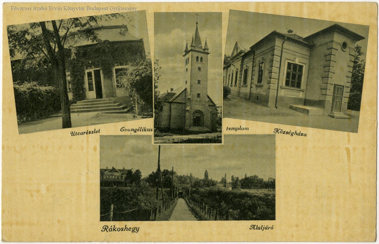 Rákoshegy Utcarészlet : Evangélikus templom : Községháza : Aluljáró