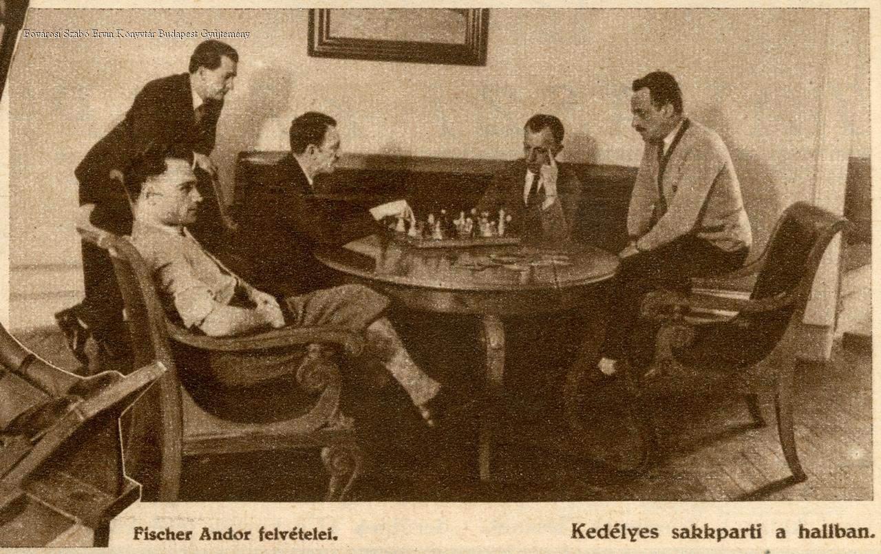 Az új m. kir. állami ideggyógyintézet homlokzata. A gyógytorna használ az idegeknek. Kedélyes sakkparti a hallban